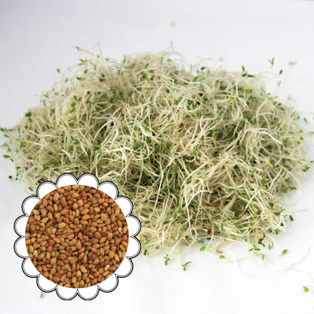 Cu aroma lor blândă, proaspătă și crocantă, aceste semințe de germeni de lucernă organică sunt perfecte pentru a îmbunătăți salatele și alte feluri de mâncare pentru a le da o notă specială. Conținut 40g