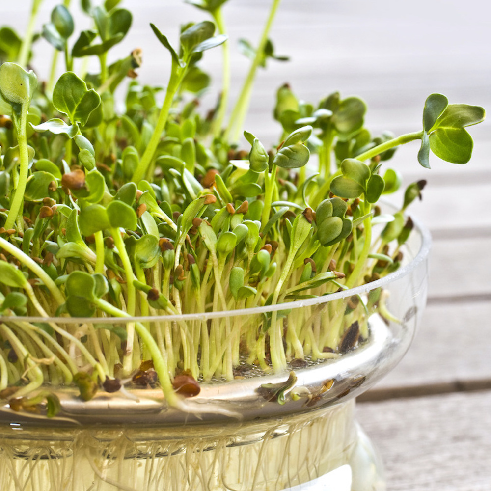| Semănat : | Se pune o lingură de semințe în germinator și se lasă timp de 12 ore. Clătiți de 2-3 ori, scurgeți apa și întoarceți germinatorul cu susul în jos. Păstrați într-un loc bine luminat, la temperatura camerei. Clătiți zilnic. După 4-7 zile, clătiți bine și consumați. |
